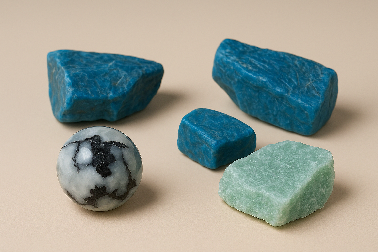 Amazonita – equilibra emoções, fortalece a autoconfiança e reduz tensões.