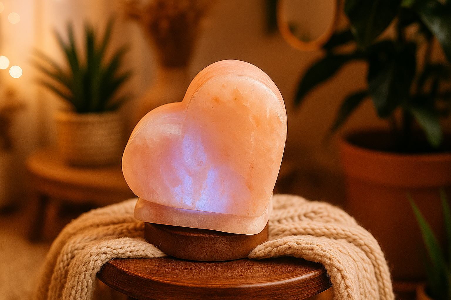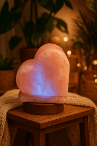 O Candeeiro Coração de Sal do Himalaia é esculpido a partir de Cristal de Halita Rosa — um sal mineral formado há milhões de anos nas profundezas das montanhas do Himalaia. Essa rocha preciosa não só purifica o ar, como repele energias densas e fortalece o campo vibracional do ambiente.