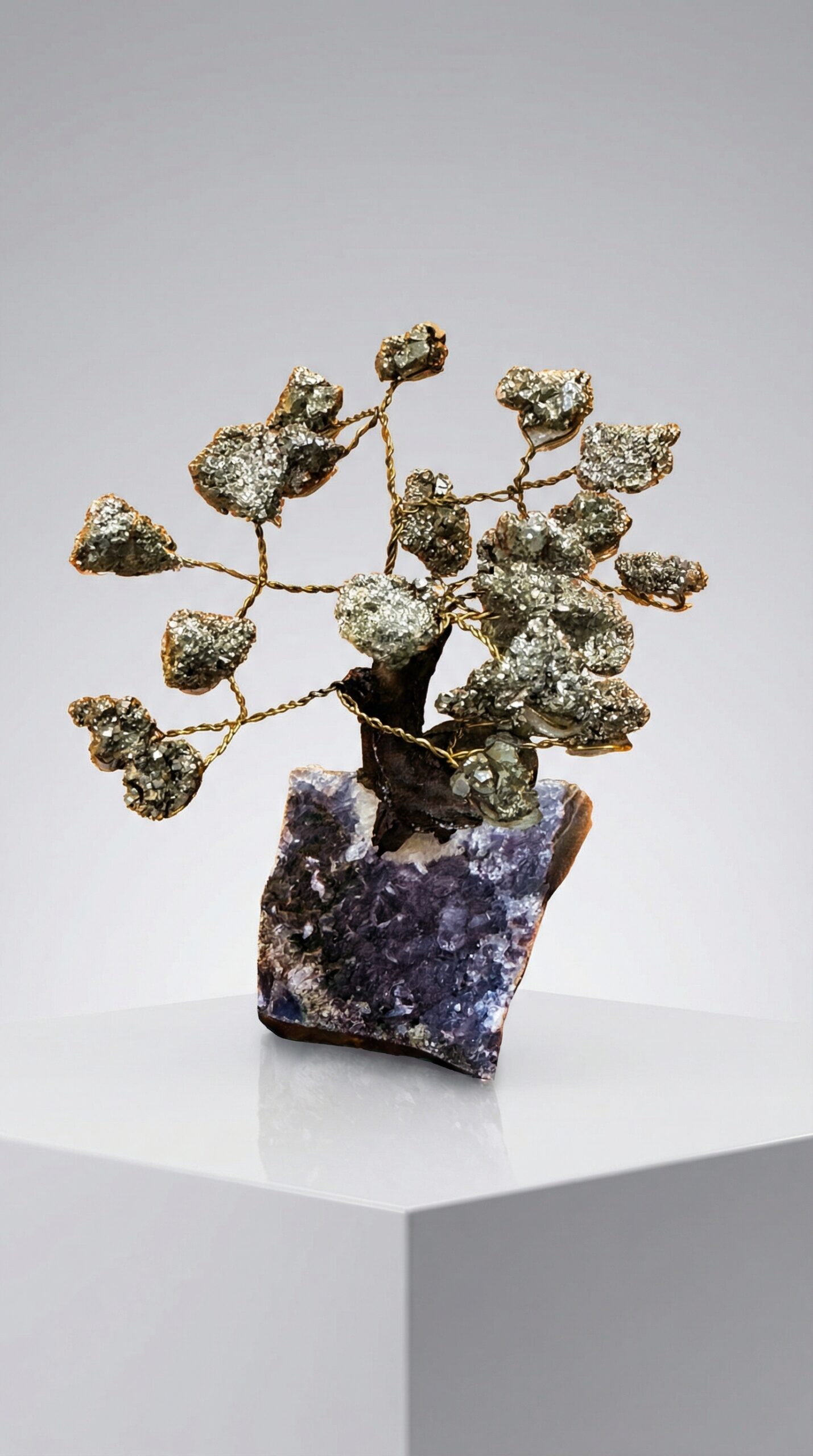 Árvore de Pirita com Drusa de Ametista Grande