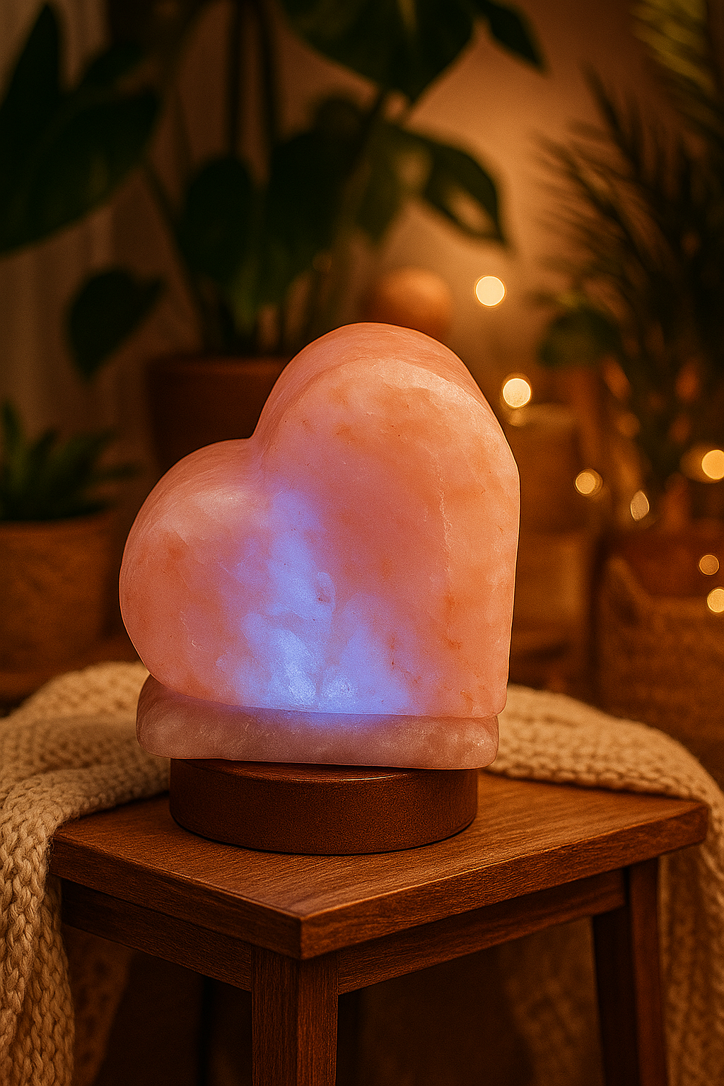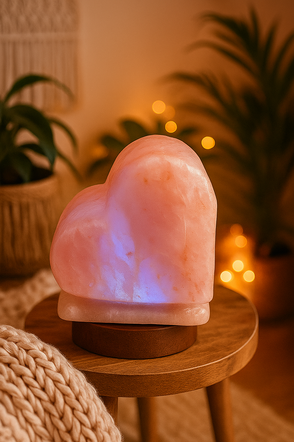 Feito com Sal do Himalaia natural, este candeeiro em forma de coração purifica o ar e equilibra as energias do ambiente.