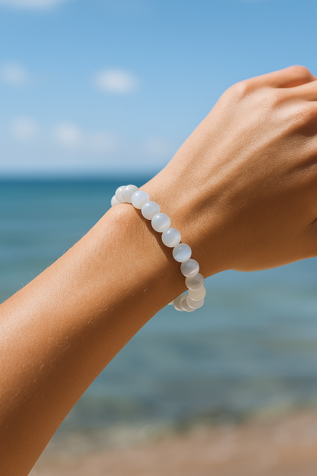 A Pedra da Lua é conhecida por equilibrar emoções, despertar a intuição e fortalecer a conexão com os ciclos naturais da vida. Usar uma pulseira de Pedra da Lua ajuda a acalmar a mente, harmonizar sentimentos e trazer clareza emocional em momentos de mudança. Uma joia delicada, profunda e transformadora.