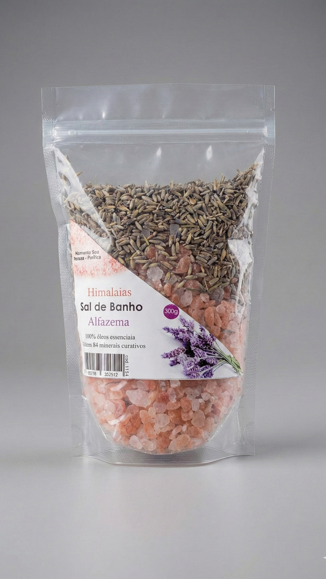 Sal de Banho de Alfazema com Sal do Himalaia: relaxamento e purificação energética.