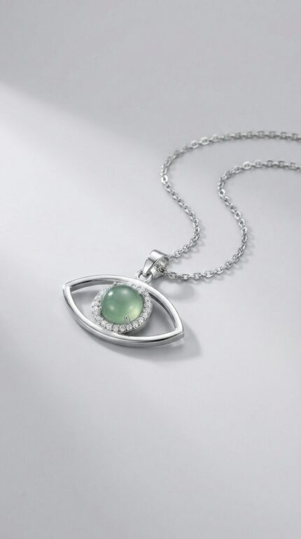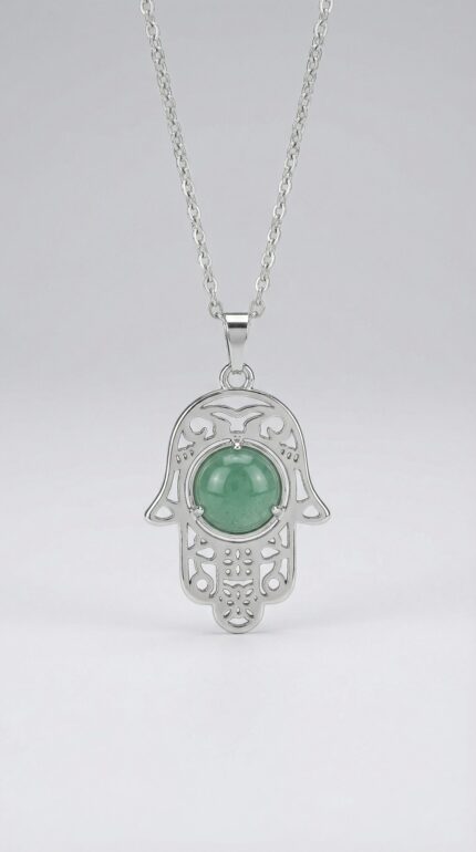 Colar Mão de Hamsa (Mão de Fátima) com Quartzo verde