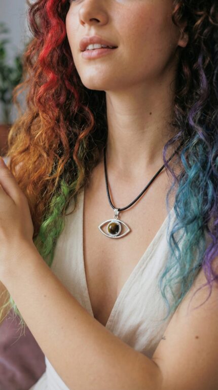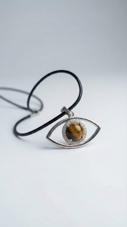 Colar Mão de Hamsa (Mão de Fátima) com Olho de Tigre