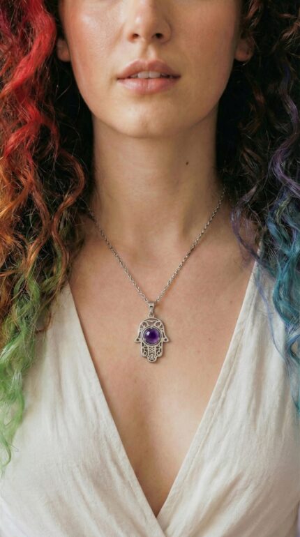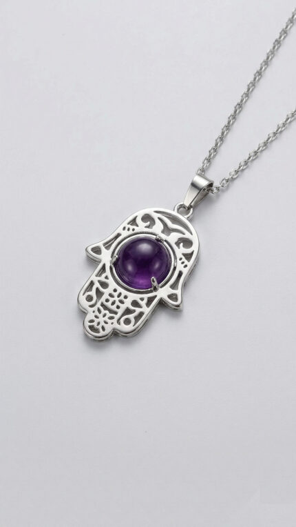 Colar Mão de Hamsa (Mão de Fátima) com ametista